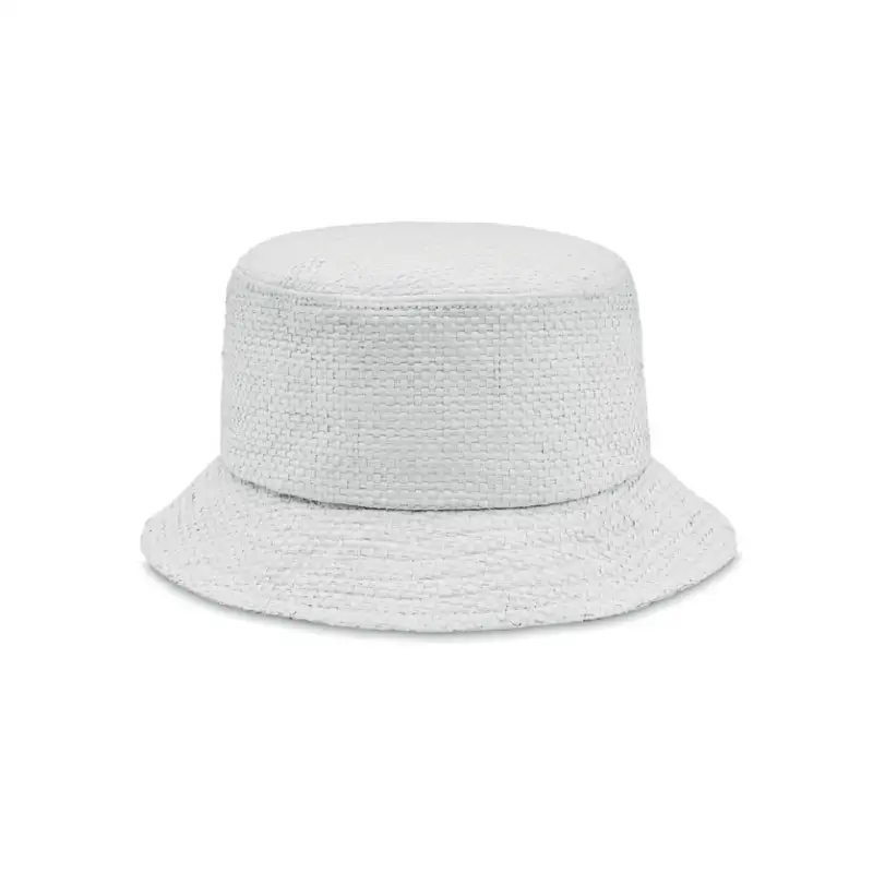 Елегантна шапка тип „кофа“ , изработена от хартиена слама, която съчетава лекота, стил и естествена визия. Подходяща за летни събития, плаж, фестивали и рекламни кампании с еко насоченост.