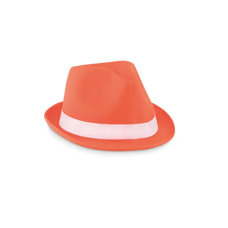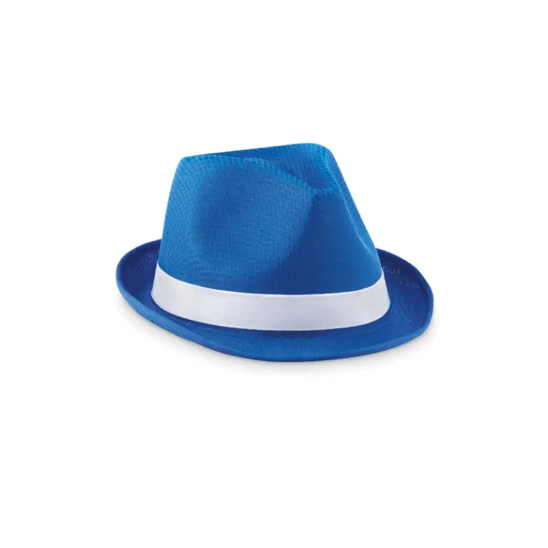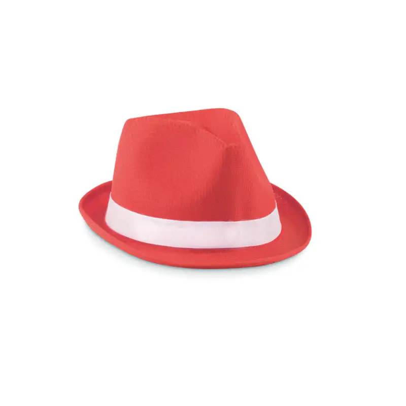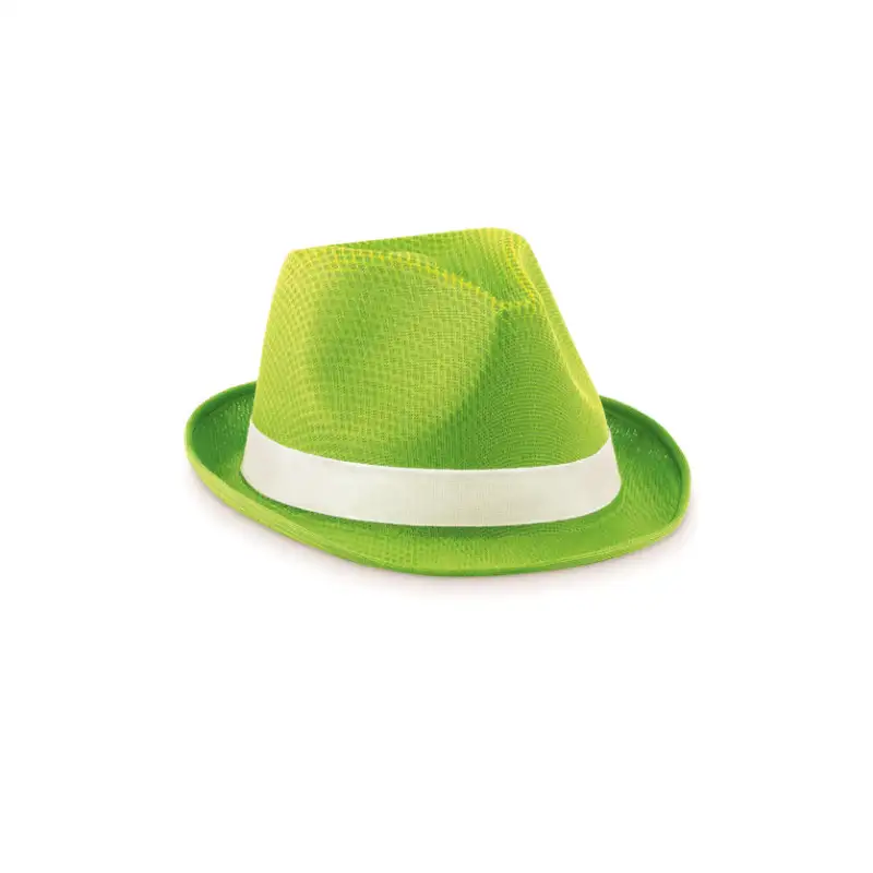 Весела и лека шапка тип „кофа“, изработена от цветна полиестерна слама, с декоративна бяла лента, която се доставя отделно при поръчки без печат. Съчетава свеж стил и практичност – идеална за плажни събития, фестивали, мода и рекламни кампании.