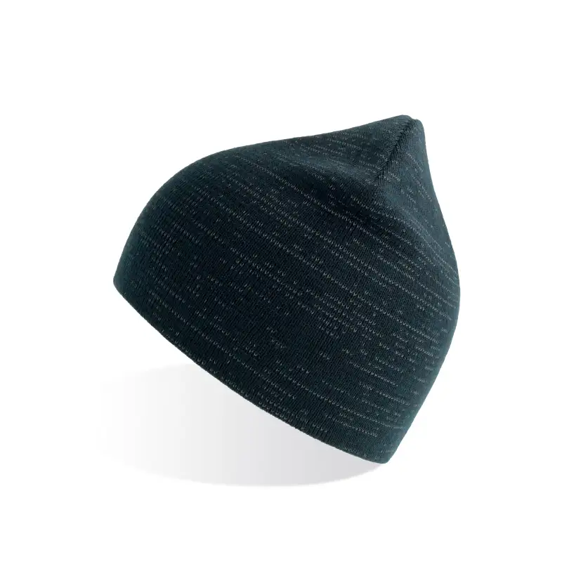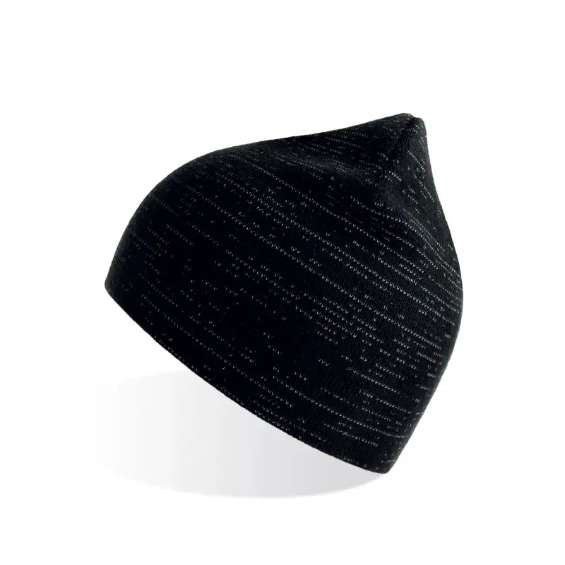 Иновативна зимна шапка с рефлексна нишка, изработена от 50% рециклиран полиестер и 50% полиестер, създадена за активни хора, които не спират дори в тъмното.