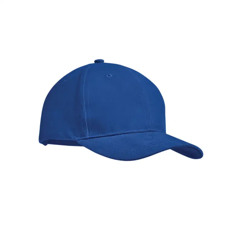 Класическа 6-панелна бейзболна шапка, изработена от четкан памук с висока плътност – 270 г/м², с регулируема метална катарама и скрит процеп за прибиране на лентата. Моделът е устойчив, удобен и подходящ за ежедневна употреба и персонализация.