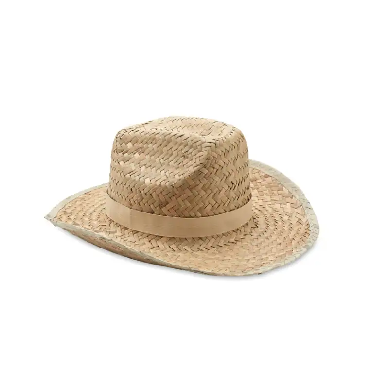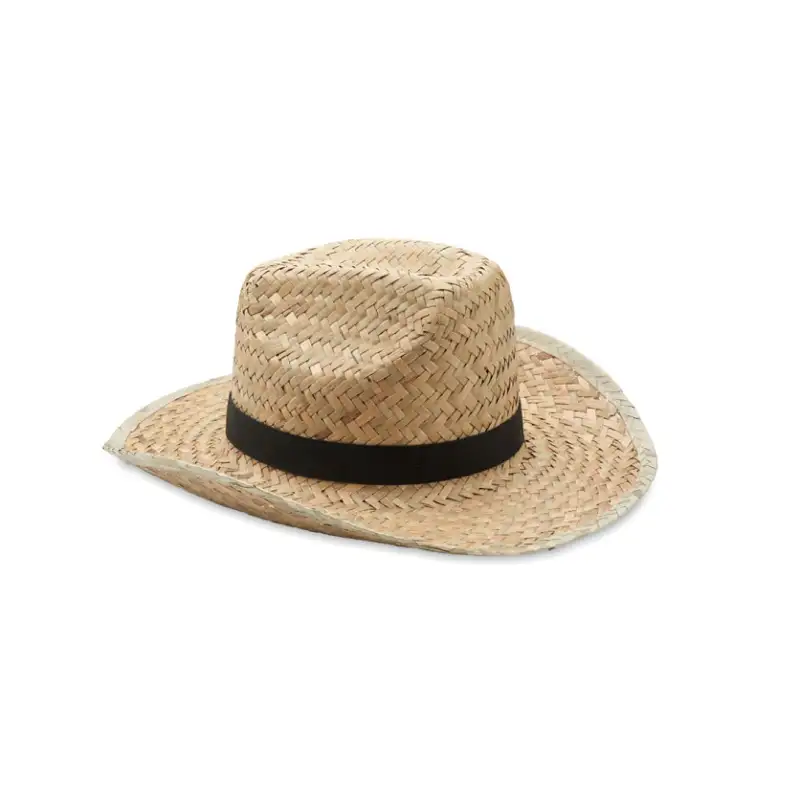 Стилна каубойска шапка, изработена от естествена слама, с декоративна полиестерна лента, която добавя завършен и елегантен акцент. Съчетава класическа форма с лека конструкция, подходяща за летни събития, тематични кампании и outdoor активности.
