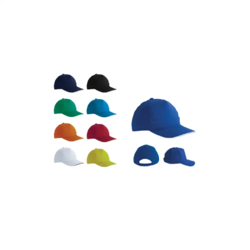 Класическа 5-панелна шапка тип „сандвич“, изработена от 100% памук, с четири бродирани вентилационни отвора за оптимална циркулация на въздуха. Моделът разполага с велкро закопчаване, което позволява удобно регулиране според размера на главата.