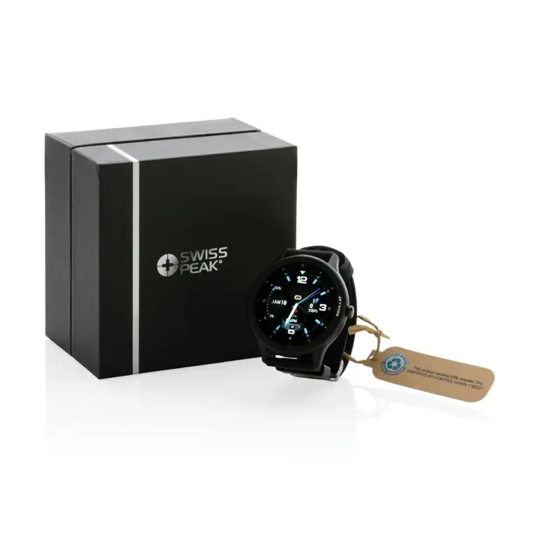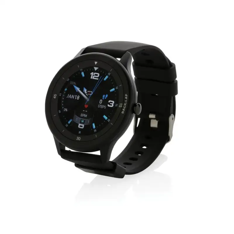 С дисплей с висока резолюция. Изработен с RCS (Recycled Claim Standard) сертифицирана рециклирана TPU лента за ръка и рамка от цинкова сплав. RCS сертификацията гарантира напълно сертифицирана верига за доставки на рециклирани материали. Функциите включват: