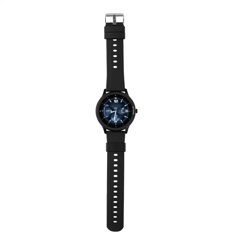 Съвместим с Android 4.4 и IOS 8.0 и по-нови версии. IPX 68 водоустойчивост и прахоустойчивост. BT 5.0. Време на готовност от 25 дни и време на работа до 7 дни. Включително зарядно с клипс за зареждане на часовника. Опаковани в FSC® микс крафт опаковка.