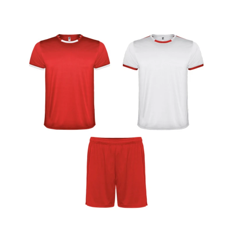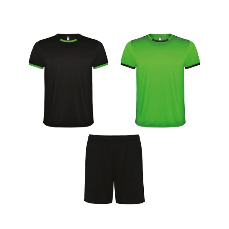 Тениските имат контрастни цветове на деколтето и ръкавите, а шортите са с еластичен колан и регулираща връзка за удобство при движение.