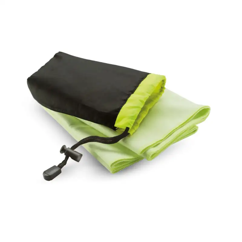 Кърпата се предлага в найлонова торбичка с регулируемо закопчаване, която я предпазва и улеснява съхранението и пренасянето. Бързосъхнещата материя гарантира, че ще бъде готова за повторна употреба за кратко време.