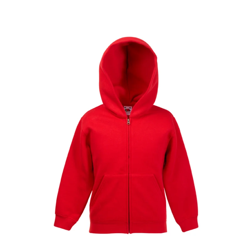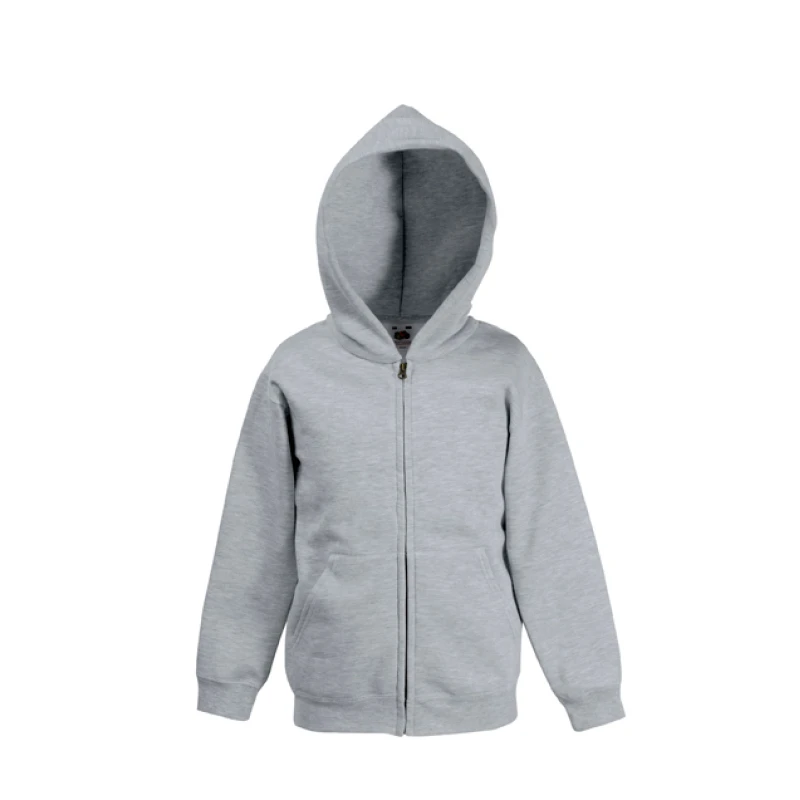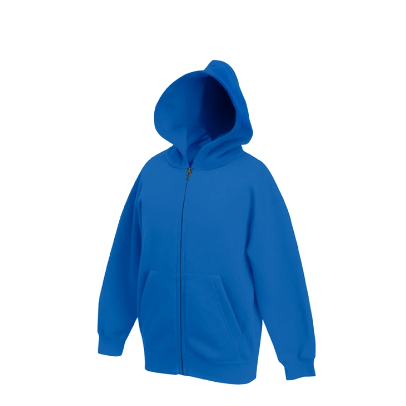 Детски спортен суитчър от двуконечна вата Classic, създаден за комфорт и активни занимания. Моделът разполага с джоб тип кенгуру, двойна качулка с връзки в същия цвят и цял метален цип. Ластиците на ръкавите и талията осигуряват идеално прилягане, а използваната Belcoro® прежда гарантира контрастен и стабилен печат. Подходящ за спорт, тренировки и свободно време.