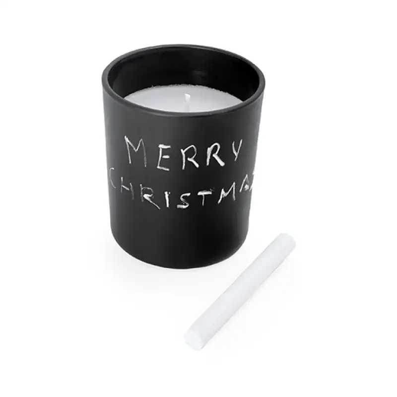 Ароматна свещ от парафин в кръгъл черен керамичен съд с модерен дизайн. В комплекта е включен бял тебешир, с който можете да напишете лично пожелание или послание върху съда – идеален жест за подарък. Свещта излъчва нежен аромат на ванилия, който създава уютна и романтична атмосфера у дома.