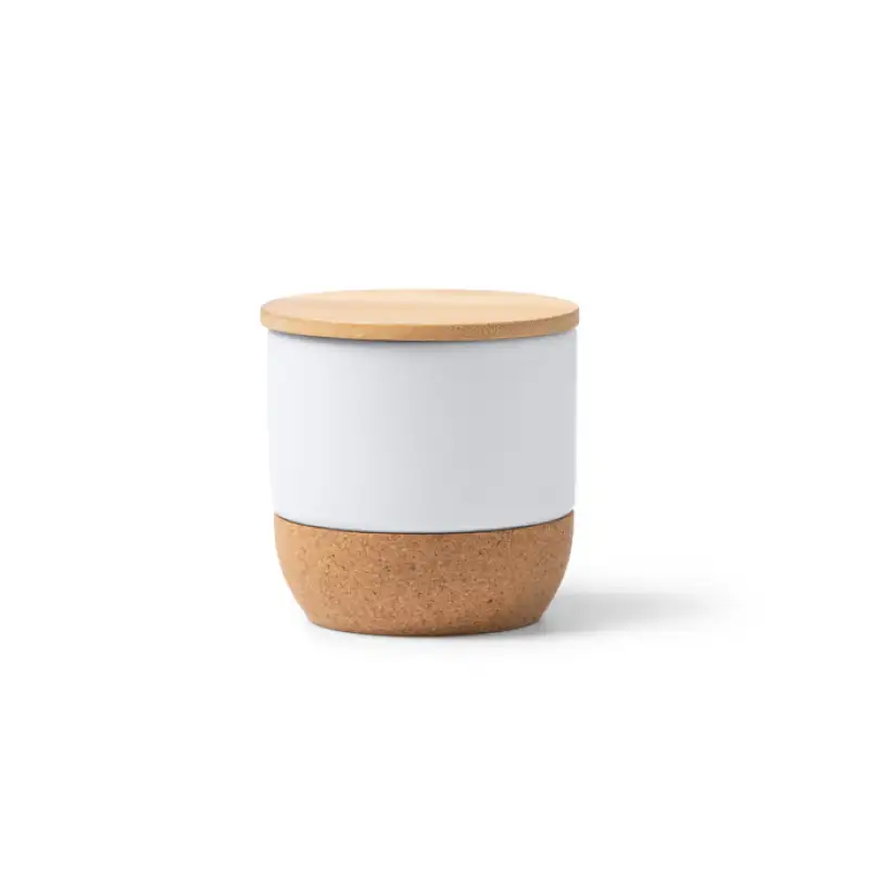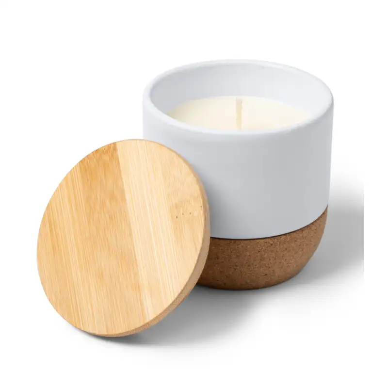 Ароматизирана свещ в керамичен съд с коркова основа и бамбуков капак. Изработена от растителен восък с приятен аромат на ванилия. Опакована в екологична кутия, идеална за подарък или за създаване на уютна атмосфера у дома.