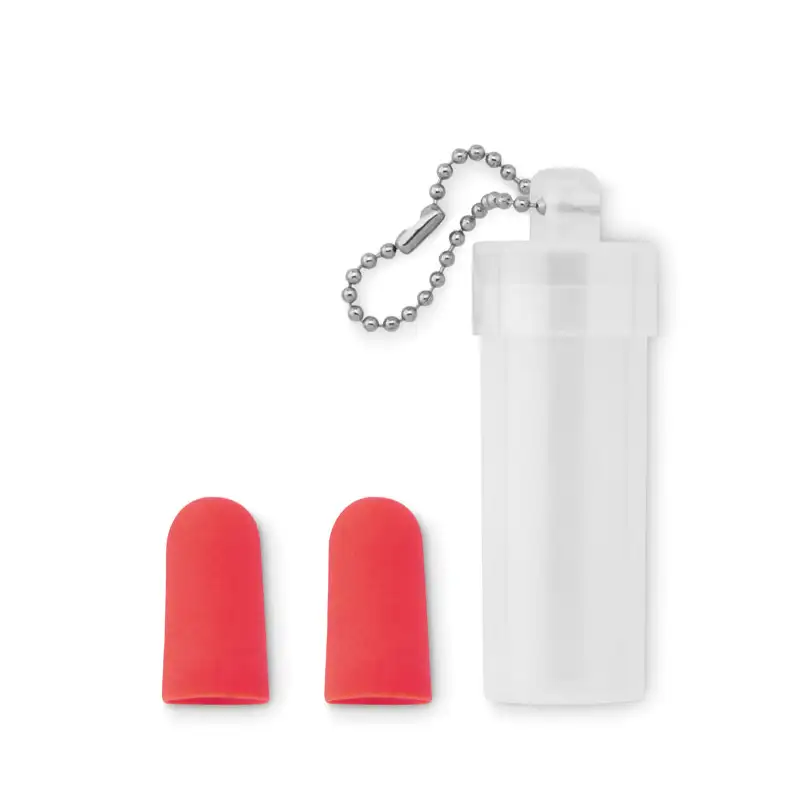 Удобни тапи за уши, съхранявани в компактна пластмасова тръбичка за лесно носене и хигиенично съхранение.