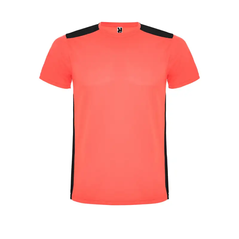 Спортна тениска с къс ръкав, изработена от 100% полиестер с плътност 130 г/м² – лека, дишаща и бързосъхнеща, подходяща за активна употреба.