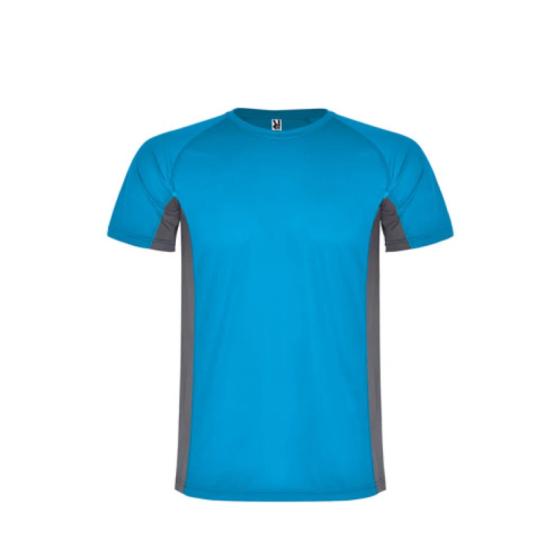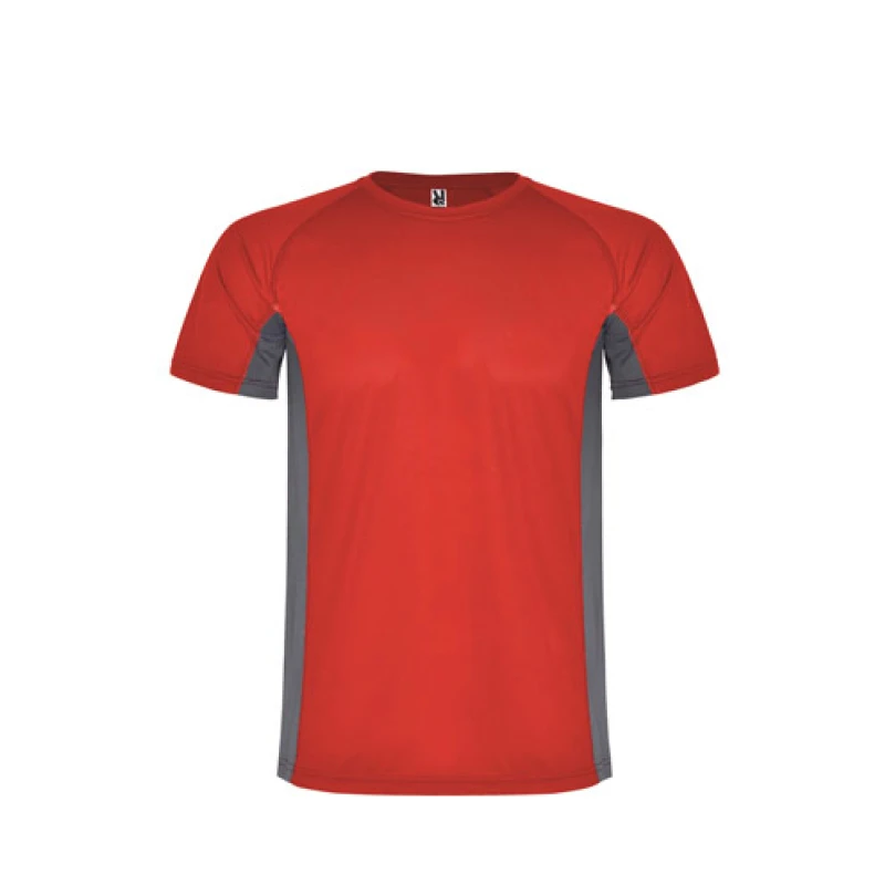 Детска двуцветна тениска, изработена от висококачествен полиестер. Моделът е с реглан ръкави и комбинация от два цвята, които придават динамична и модерна визия. Подсиленото деколте и рамене, както и страничните шевове, осигуряват издръжливост и комфорт. Материята е дишаща и лесно адаптируема към тялото – идеална за спорт и ежедневие.