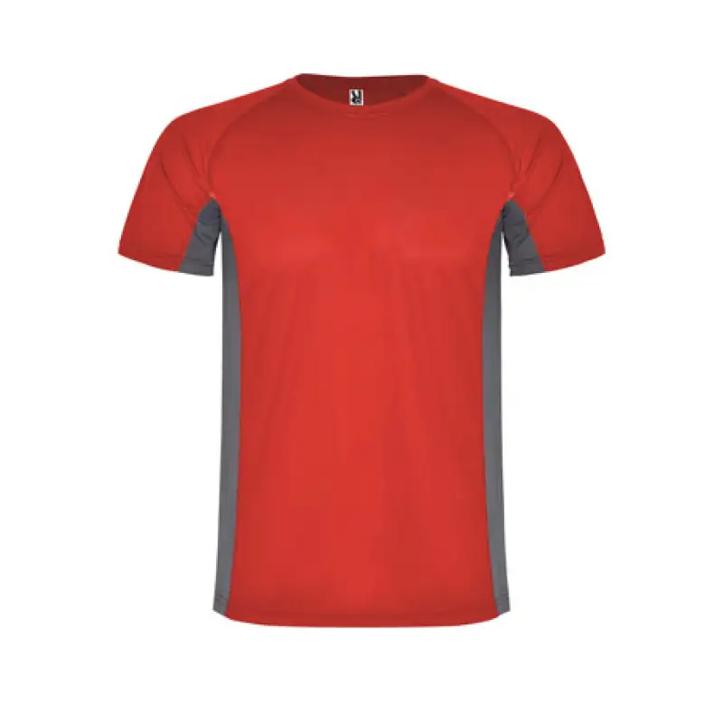 Двуцветна спортна тениска с реглан ръкави, изработена от 100% полиестер с плътност 140 г/м² – лека, дишаща и бързосъхнеща, подходяща за активна употреба.