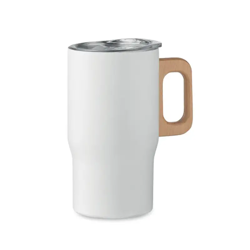 Тази термочаша е изработена от 90% рециклирана неръждаема стомана и разполага с елегантна дървена дръжка за удобен и естествен захват. С капацитет от 350 ml и херметичен капак, тя гарантира сигурност при пренос на напитки, съчетавайки екологичен дизайн с функционалност.