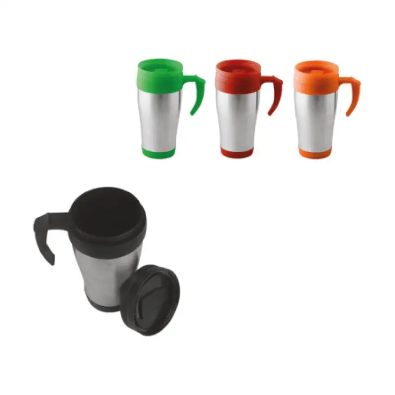 Тази чаша за път е изработена от неръждаема стомана и разполага с практична пластмасова дръжка за удобен захват. Със своя обем от 400 ml и размери 82х172 mm, тя е отличен избор за брандиране върху предвидената зона за декорация.