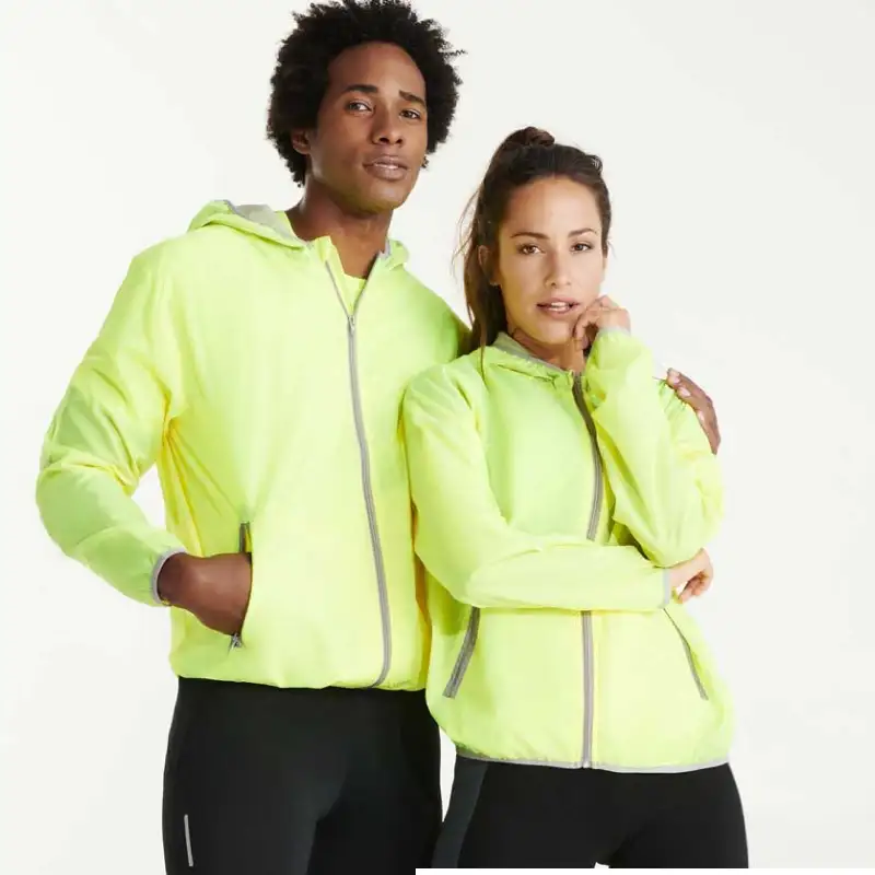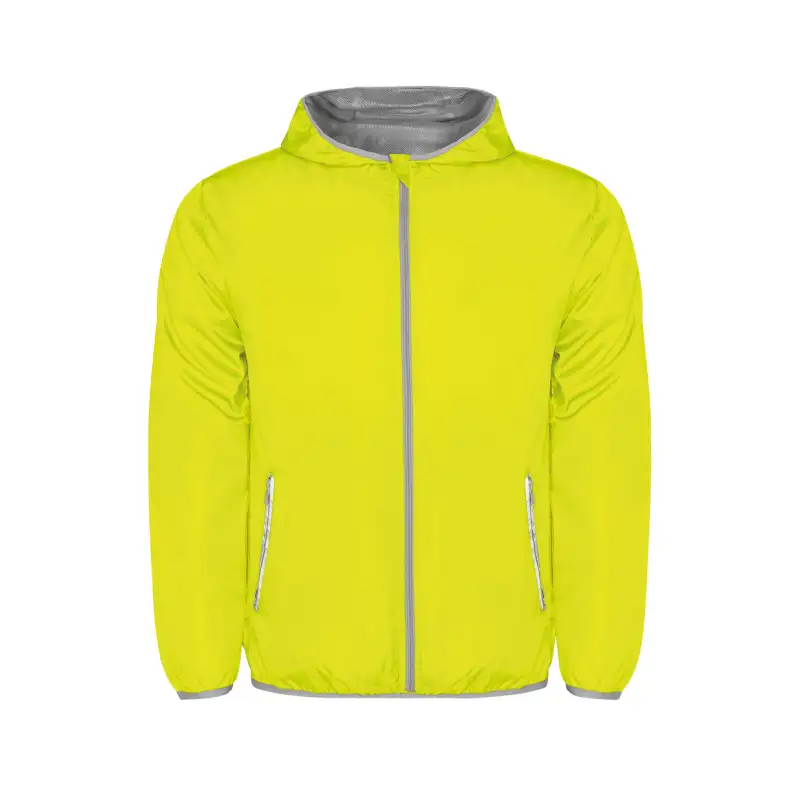Цял контрастен цип с предпазител за брадата осигурява комфорт и защита. Якето разполага с два странични джоба със светлоотразителни ципове в същия цвят, както и подплата от светла дупчеста материя в цвят на циповете.