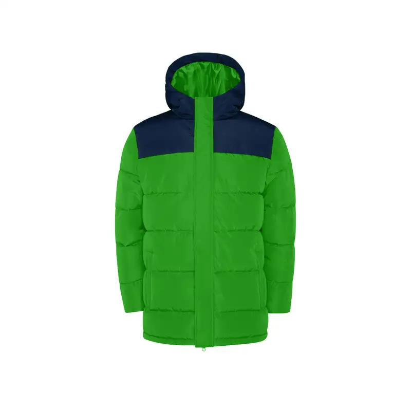 Цял цип и контрастна планка придават завършен и модерен вид. Качулката осигурява допълнителна защита, а ластичните маншети на ръкавите спират проникването на студен въздух.